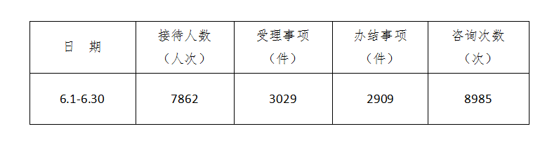雨花市民之家•综合审批区2025年6月份服务情况统计表
