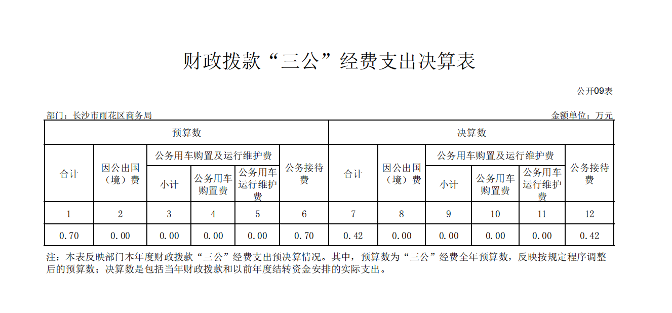 2023年度长沙市雨花区商务局部门决算“三公”经费公开表