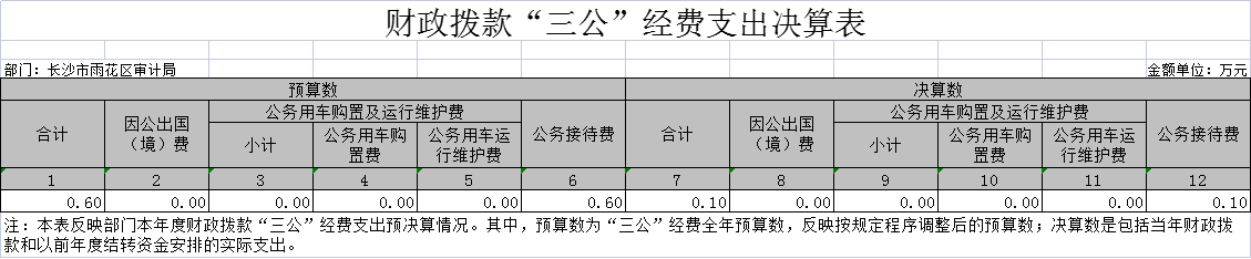 2023年度长沙市雨花区审计局“三公”经费支出决算表