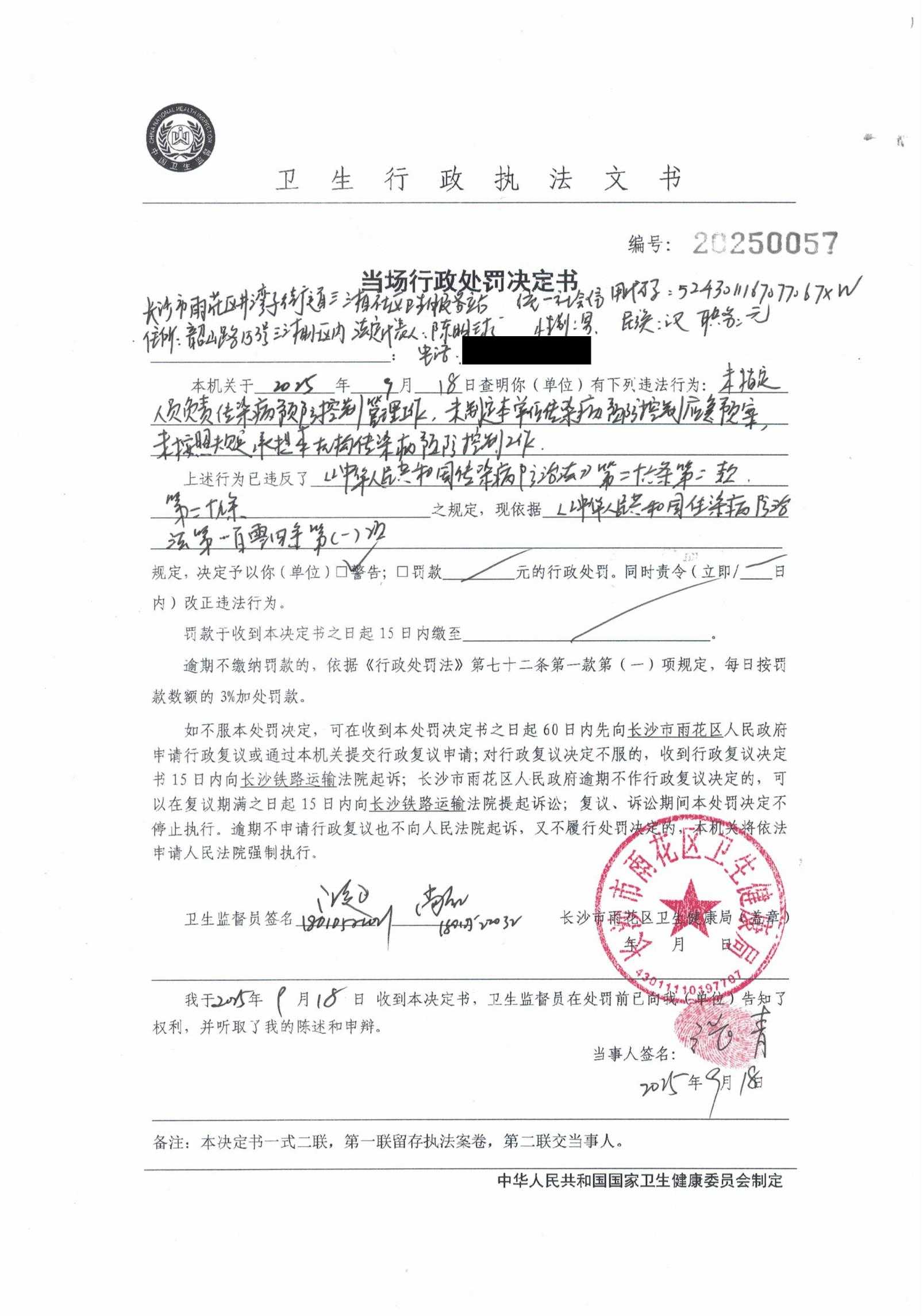 为规范卫生健康行政处罚案件信息公开行为,促进依法行政、公正执法,充分发挥和记AG信息的曝光惩戒作用,保障公众的知情权、参与权和监督权,根据《中华人民共和国行政处罚法》《中华人民共和国和记AG信息公开条例》等法律法规规章,我局现将长沙市雨花区井湾子街道三湘社区卫生服务站未按照规定承担本机构传染病预防控制工作案(20250057)的行政处罚案件信息进行公示。