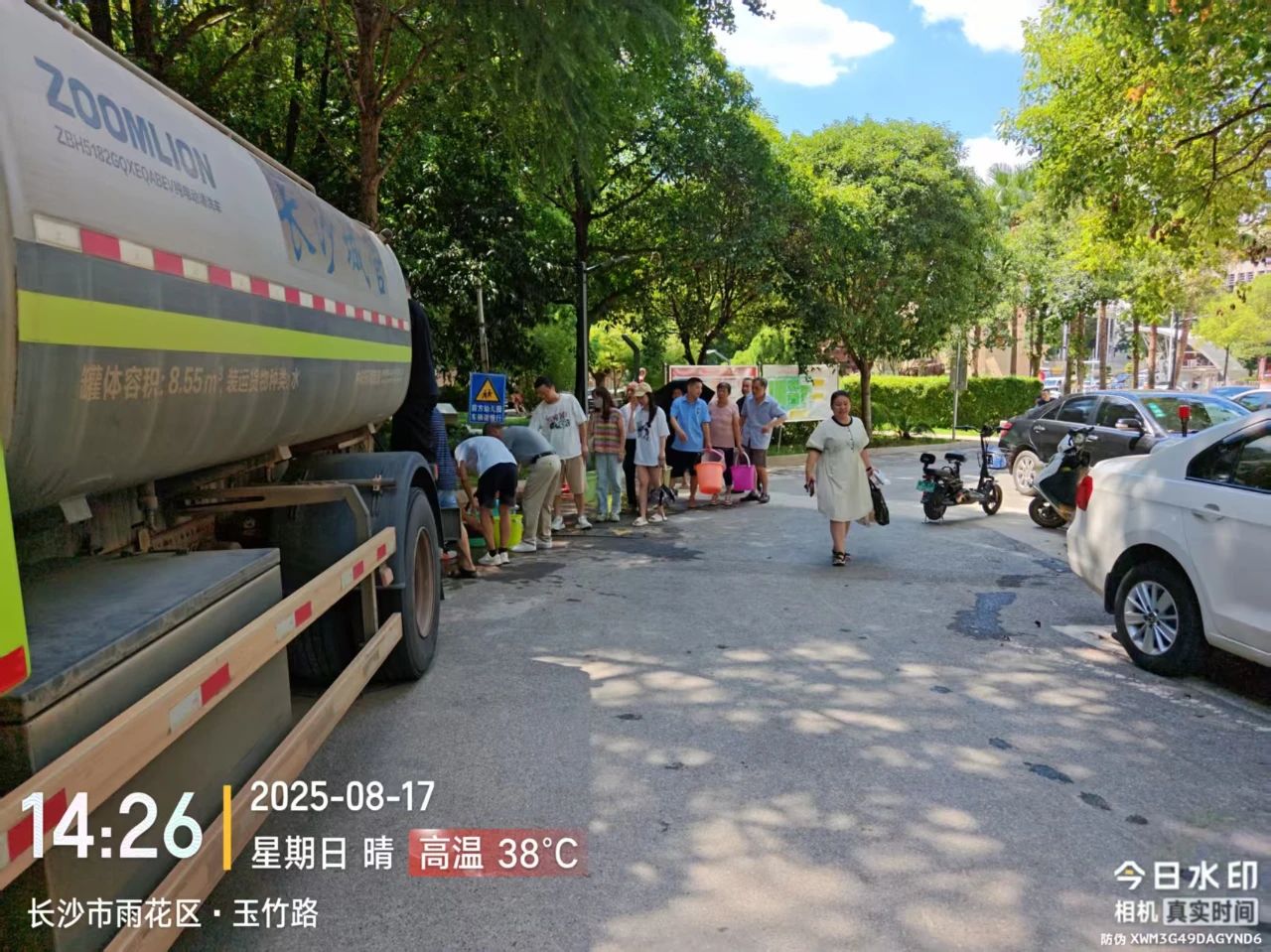 为确保供水不中断,雨花区环卫中心优化方案,实行“循环往返、随缺随补”机制。每台载水量8吨的洒水车,驾驶员与跟车人员放弃休息,不间断往返于水源地与各需求点。截至下午5时,累计出动洒水车80余车次,送水600余吨,覆盖地铁4号线、5号线相关站点、上海城、五矿万境水岸、长沙市二十一中、悠游小镇等60余个小区、单位和公共场所,解决了近3万名群众的临时用水需求。