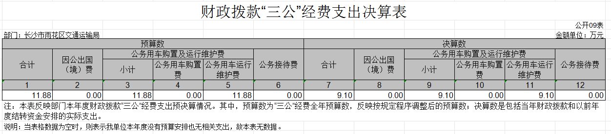 长沙市雨花区交通运输局2023年度财政拨款“三公”经费支出决算表