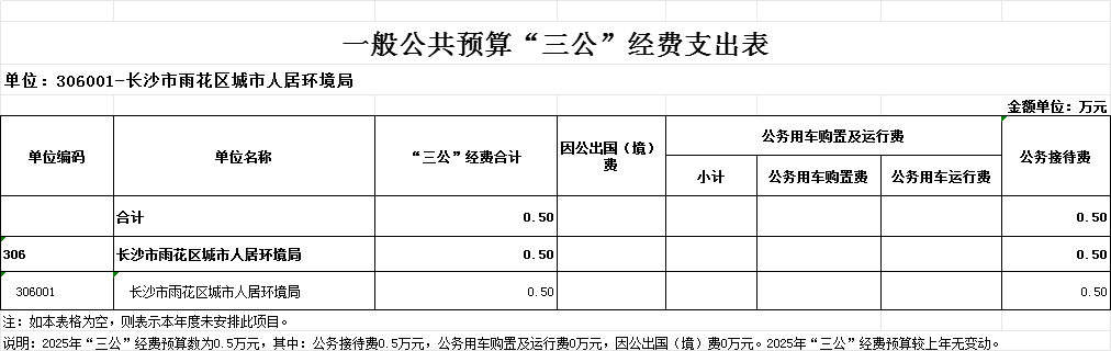 首页 > 政务公开 > 信息公开目录 > 部门信息公开目录 > 区人居环境局 > 财政信息 > 三公经费