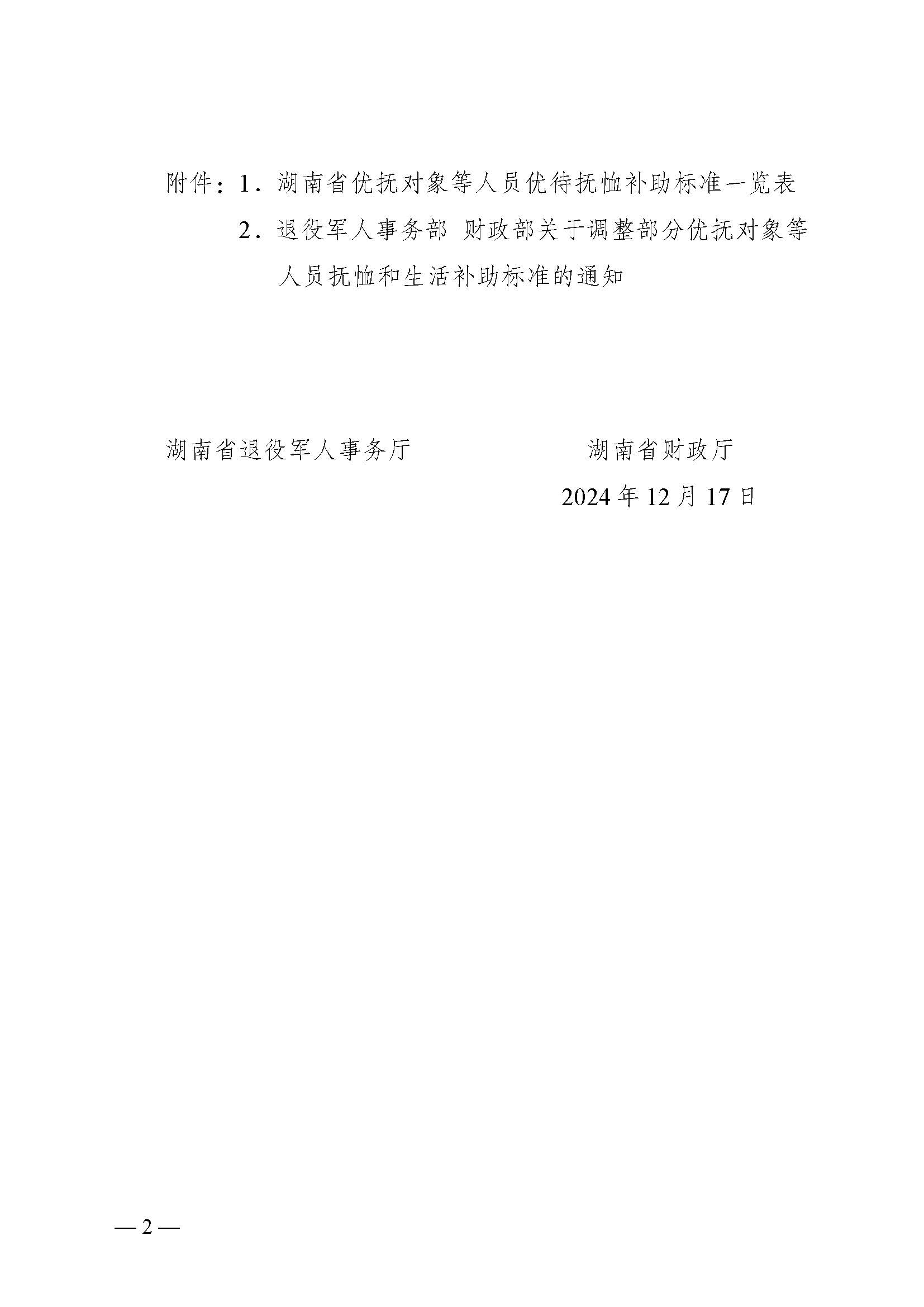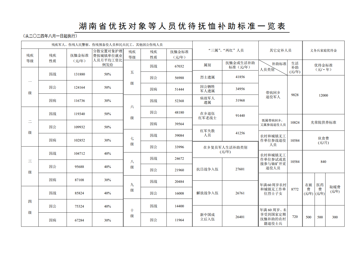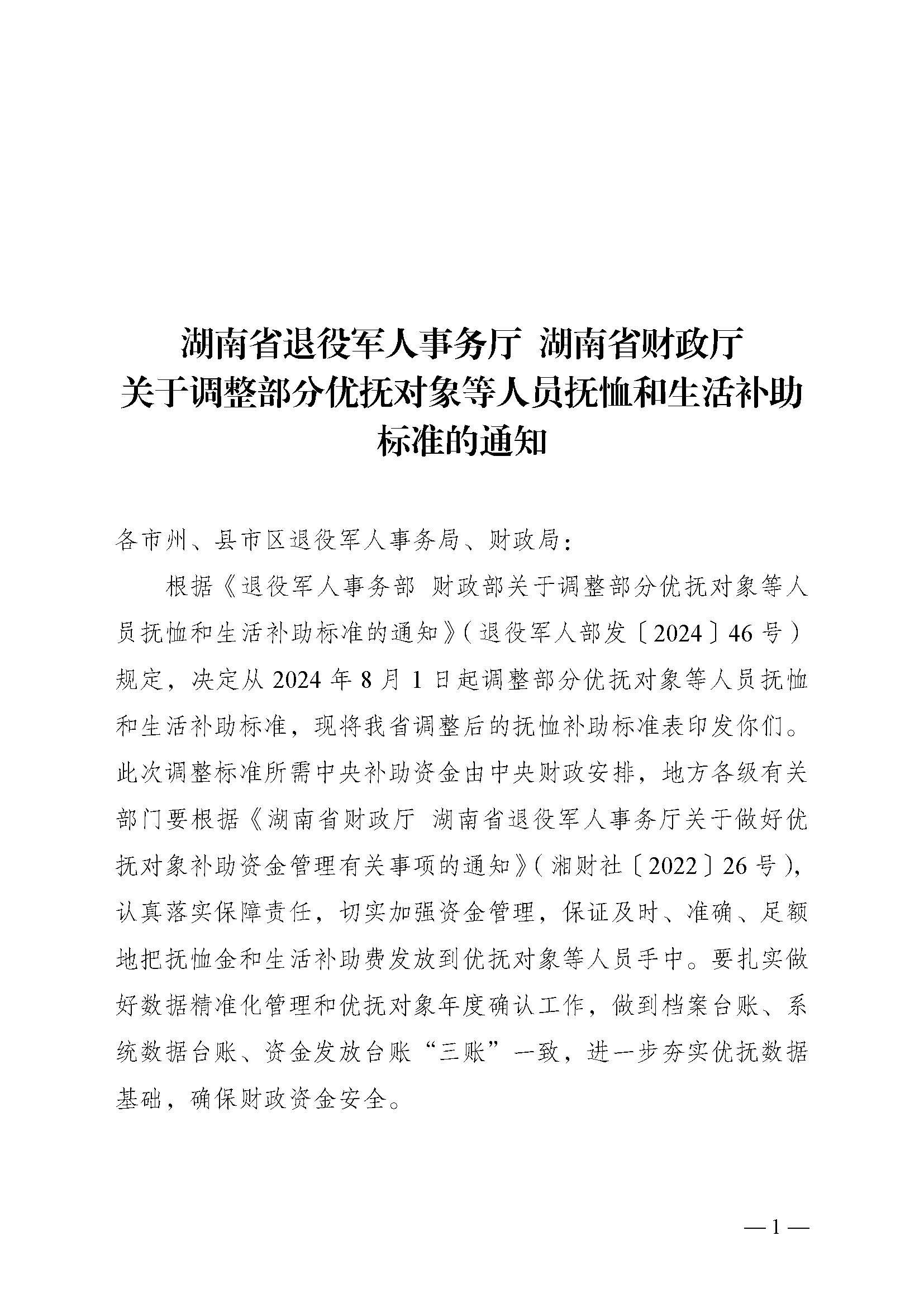 湖南省退役军人事务厅 湖南省财政厅关于调整部分优抚对象等人员抚恤和生活补助标准的通知