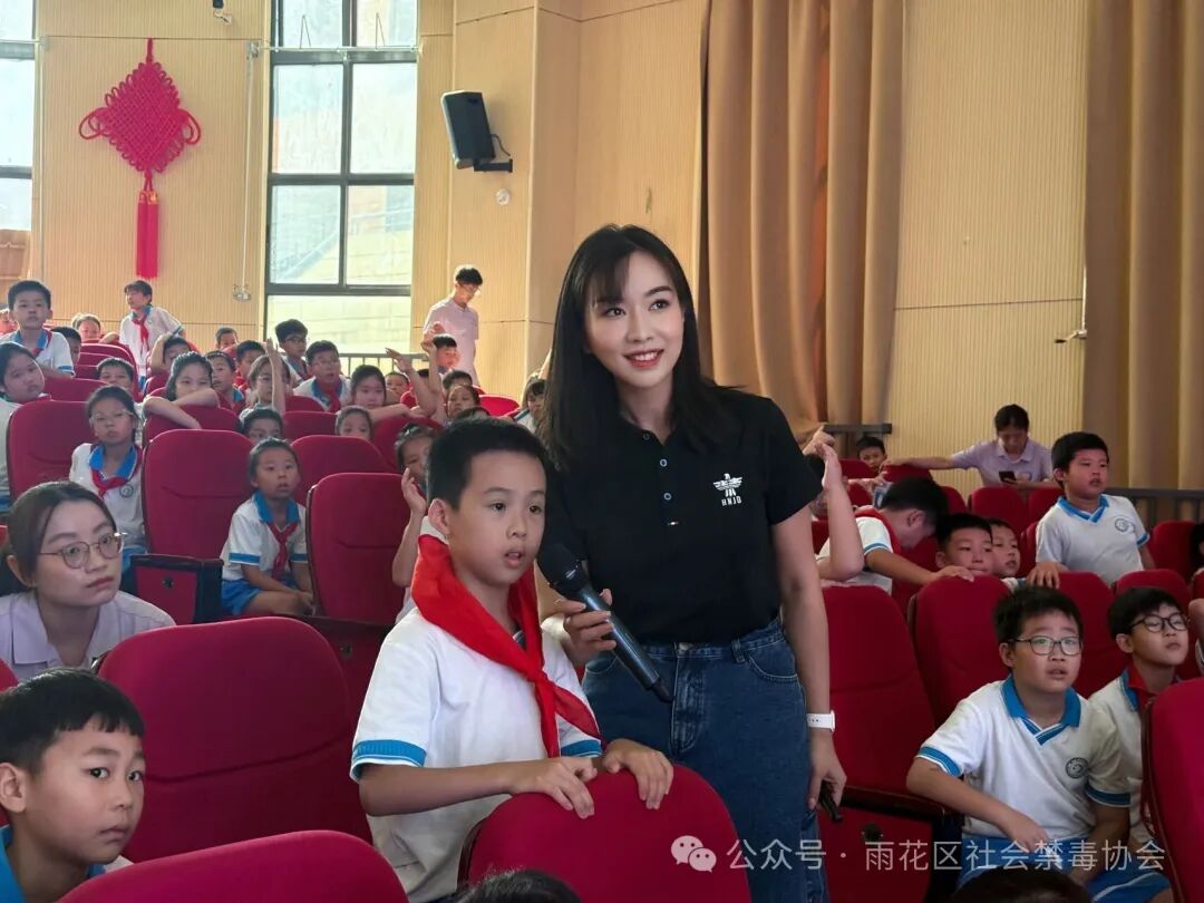 课堂上的氛围格外热烈:孩子们坐得笔直,眼神里满是对知识的渴望;到了“有奖问答”环节,小手更是齐刷刷举起,清脆的回答声、兴奋的欢呼声此起彼伏,原本严肃的禁毒知识,在互动中变得易懂好记。而雨花区社会禁毒协会精心准备的禁毒文创产品,既实用又有纪念意义,拿到礼物的孩子脸上满是笑容,也让“禁毒”二字以更鲜活的方式住进了心里。