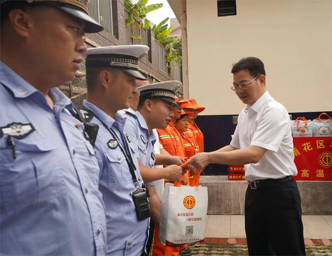 慰问中,黄军其强调,全区各级各部门要带着感情、带着责任关心关爱一线劳动者,落实落细防暑降温各项措施,做好各项服务保障,切实保障劳动者身心健康。要统筹做好高温等极端天气的应对工作,强化监测预警、调度指挥和高效处置,全力保障城市安全运行。