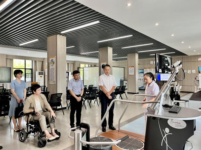 尹华凯一行先后在长沙民政职业技术学院健康养老大楼、湖南康复机器人工程技术研究中心、艺术学院、大运馆考察学院智慧健康养老服务与管理专业建设、科技助残、“文化+科技”专业融合建设、体育文化育人等情况。并对拟建设盲人柔道基地进行现勘。