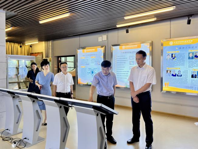 图为尹华凯在长沙民政职业技术学院健康养老大楼考察智慧健康养老服务与管理专业建设情况